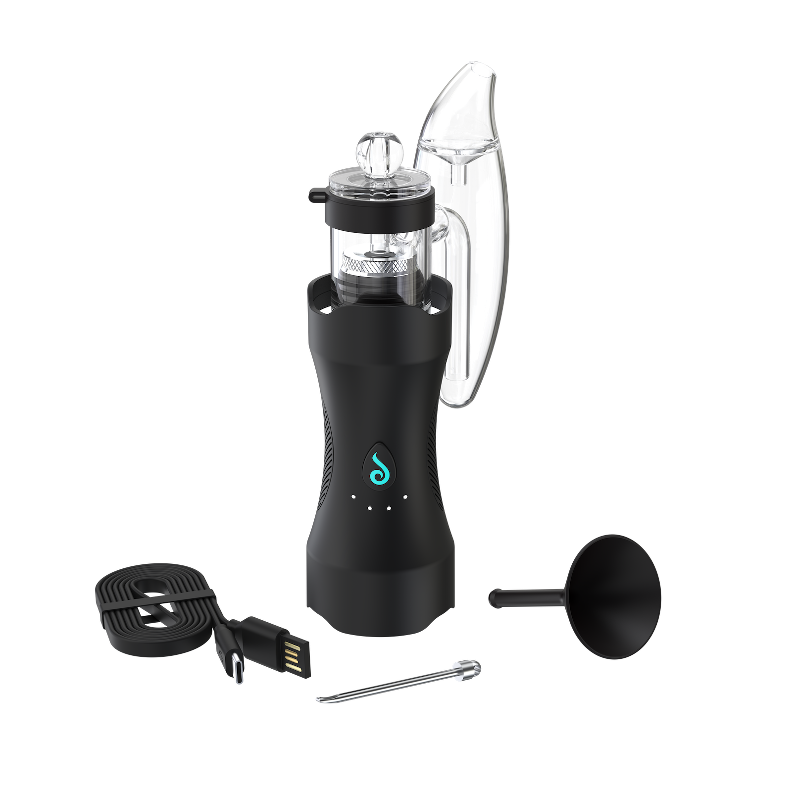 The XS was designed with convenience in mind, load, close, heat, blow. A simple spill proof glass percolator, quartz cup with a ceramic heating rod and 60 minutes or less to charge at the lowest price point for any E-rig of its caliber.